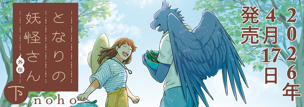 nohoさんの『となりの妖怪さん 外伝(下)』が17日発売! 人と妖の珠玉の異種交流譚、人気シリーズがついに完結です。描き下ろしも収録。特典やフェアなど情報満載の告知ページを公開しました。